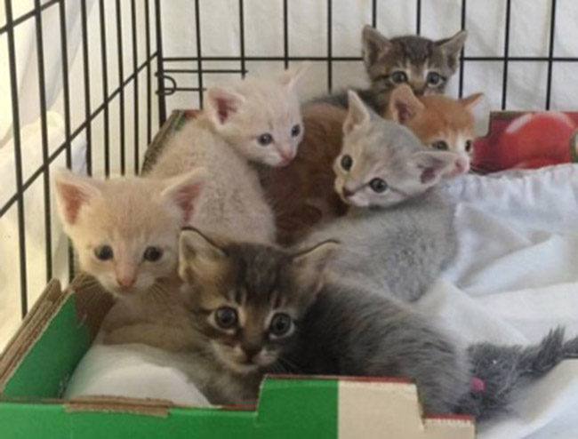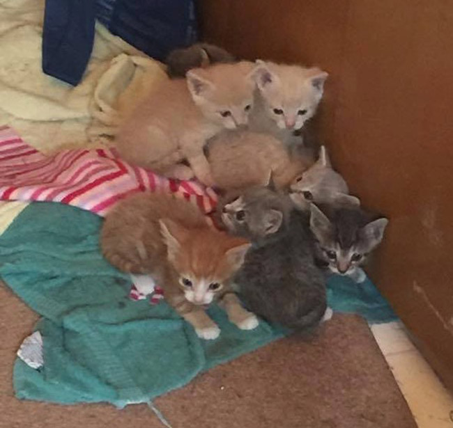 A woman in Port Coquitlam near Vancouver, Canada, saw a mother cat with two kittens emerging from a garage. The kind lady took the little family inside but then the mother was very insistent on being let back out. Once the door was open she went straight back to the garage and one by one brought out five more kittens!