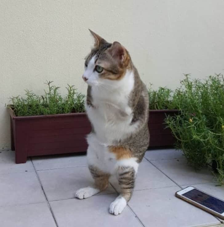 The disabled cat you can see in the pictures is called Able Maew. She was living on the streets of Lat Prao in Thailand for a couple of years. Life on the streets is dangerous, and one day, Maew was involved in a bizarre accident which left him without his two front legs. The poor kitty survived, but had to learn how to walk again. Luckily, kind people saved it and gave it the love and support Maew needed.