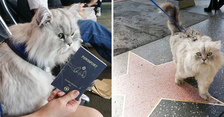 This adorable fluffy cat, who is rising star himself, has visited the many stars that adorn the pavements in Hollywood.
