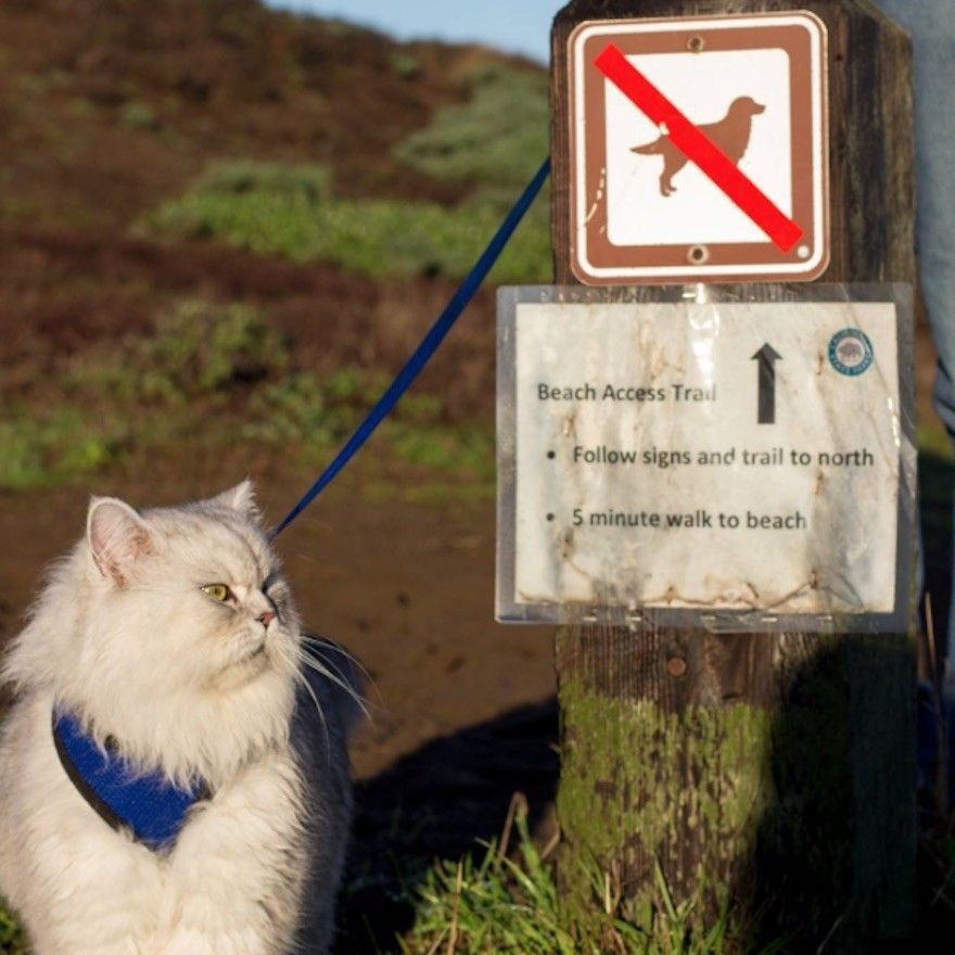 “He is an indoor only cat with the exception of leash time,” said his humans. “We started taking him out with us since he was just a few weeks. He loves it! He gets the outdoor experience and we get to share in all of his adventures! He loves his leash,” they added. “As soon as we pick it up he runs to the door and sits down for us to put it on. He is a travel bug.”