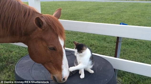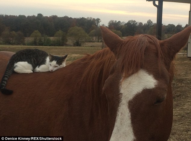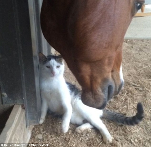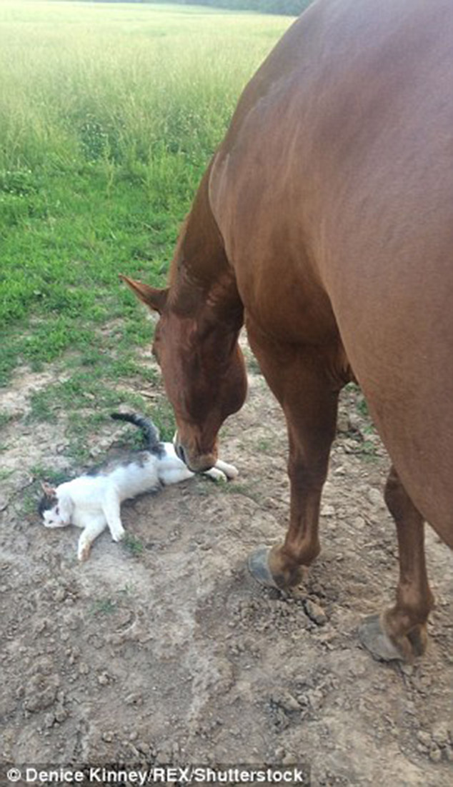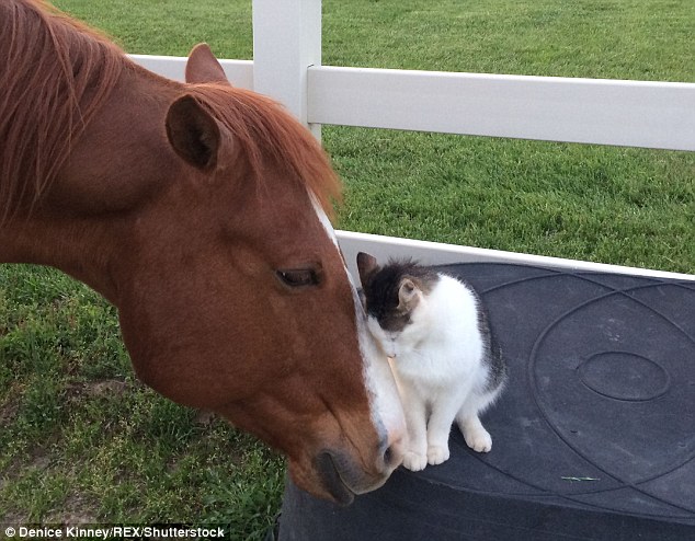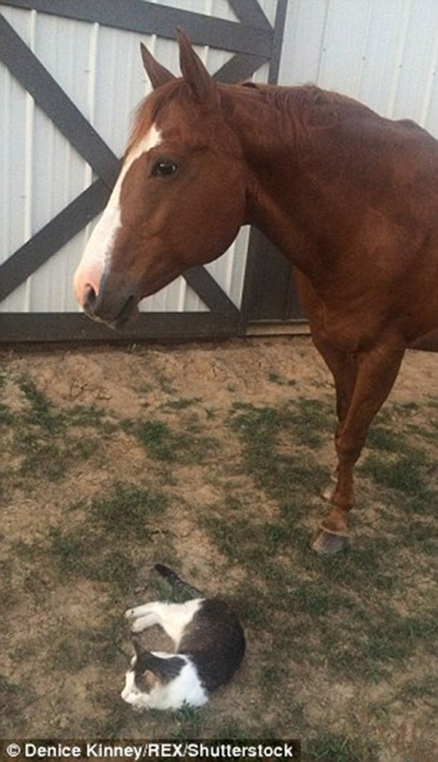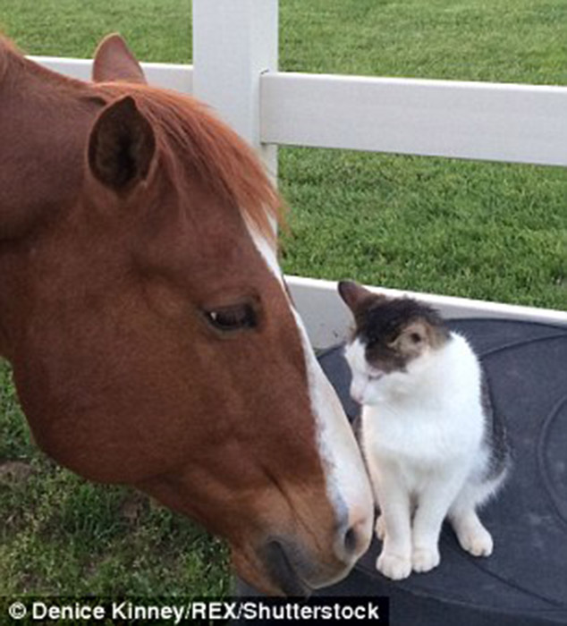 ‘When Sappy was a small kitten, I could tell they had a close bond, the kitten never paid attention to other horses,’ said owner Denice Kinney.