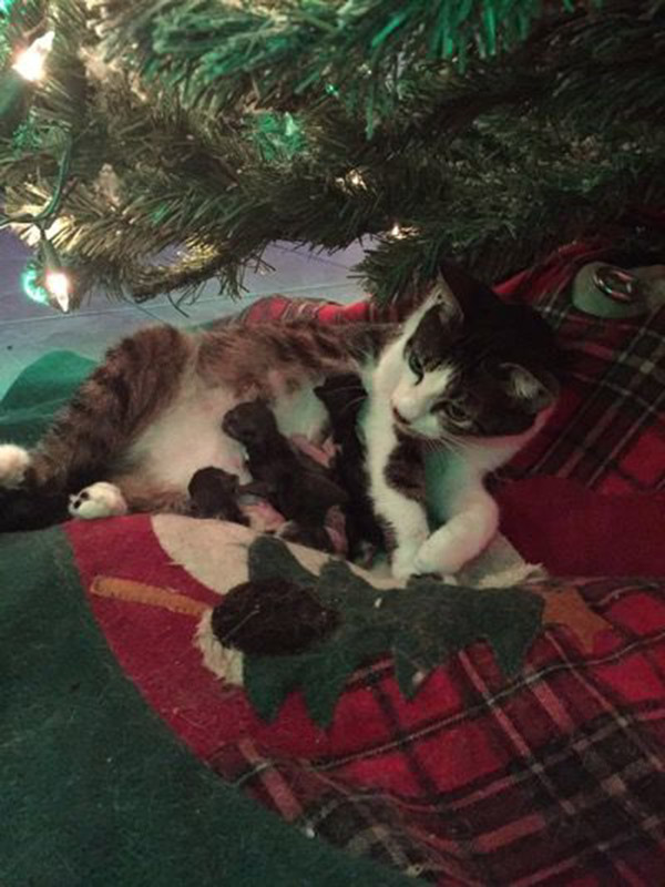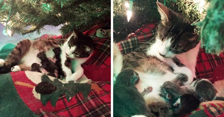 A Florida family’s cat gave birth to four beautiful kittens under their Christmas tree, and it just might be the cutest Christmas present ever.