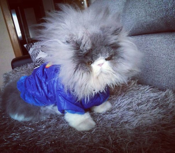 He is sometimes even recognized on Instagram. Popular kitty….but our guess is that it’s just his fur that is popular.Because his fur is so out of control, he has to have his fur trimmed back regularly….and he is not happy about it. Do you like his mane long or short?
