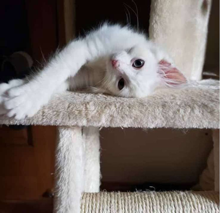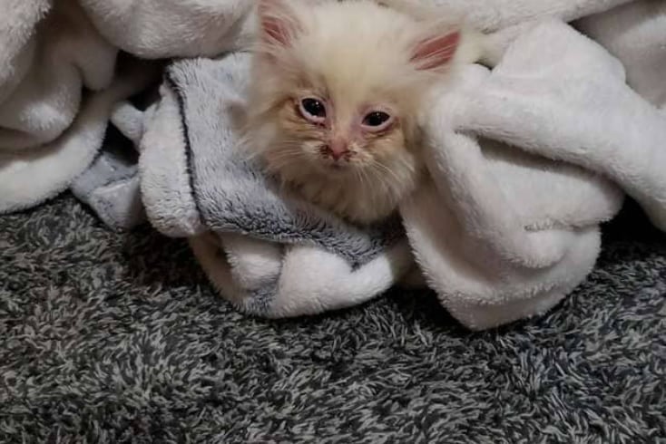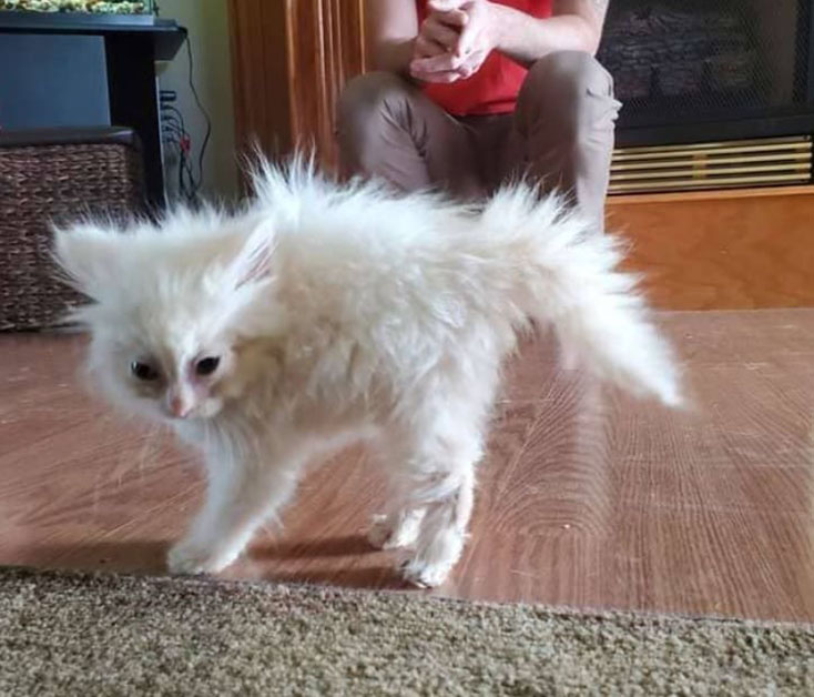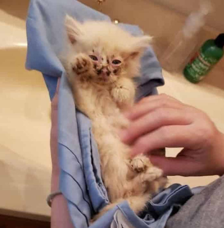 Sam immediately gave the kitten a bath and warmed her up in front of a heater. She was cold to the bone and she finally fell asleep after about 45 minutes. At first, the family wanted to give the kitten for adoption, but day by day she grew close to their hearts. They already had two dogs and two cats, and as it turned out, they played a major role in the decision to adopt Nimbus.