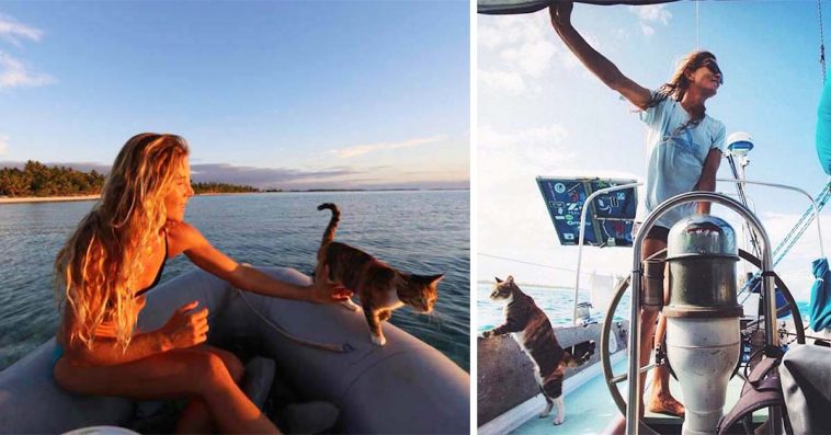 Could you imagine sailing around the world all alone? I mean, look at Tom Hanks in Castaway…he didn’t sail the world. But, he got left on an island, and had to create “Wilson”, in order to survive. Well, this former bartender who decided to sail the world, rescued a cat in order to survive her journey. Now, the cat has become a sailing and ocean life expert.