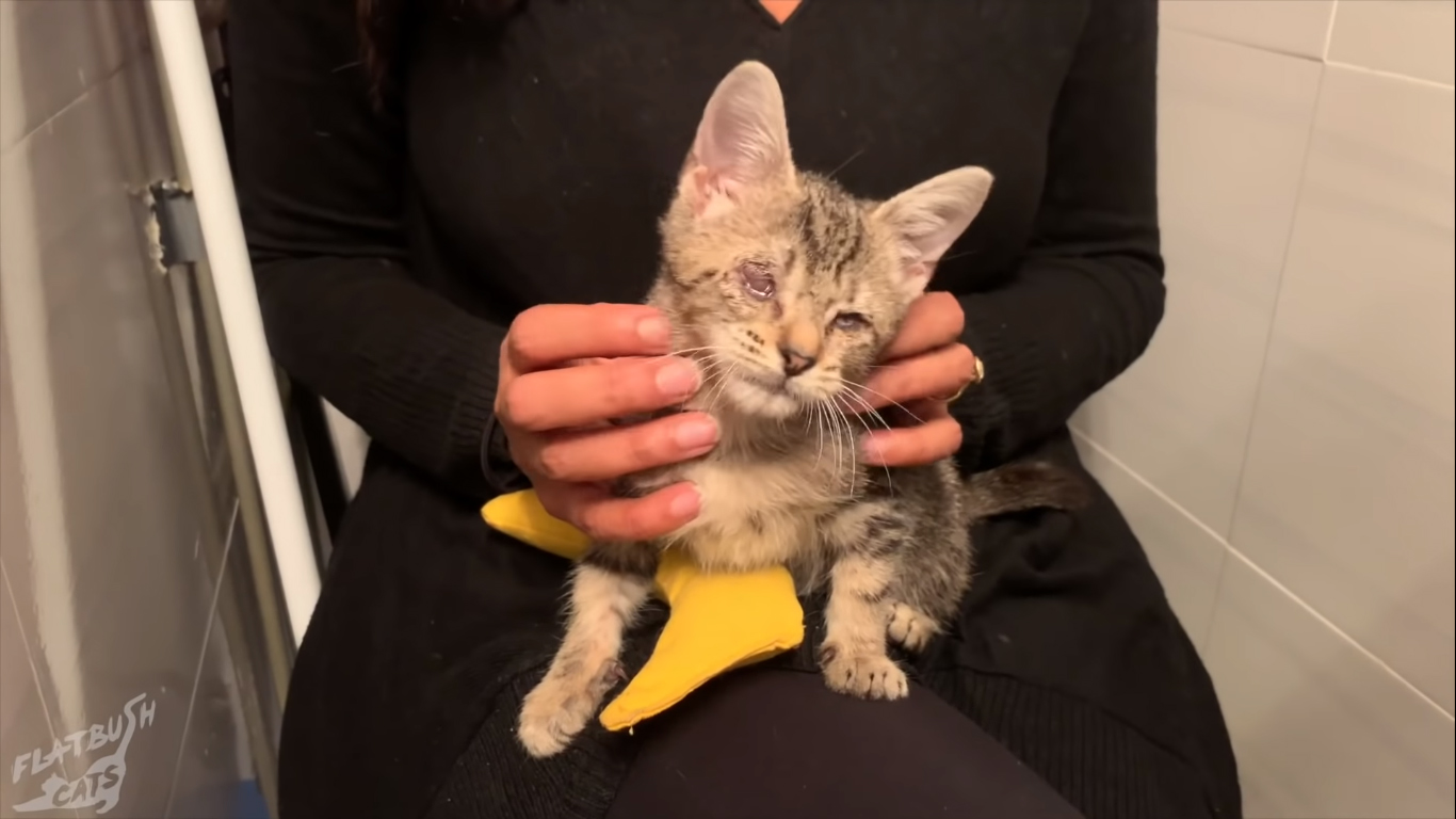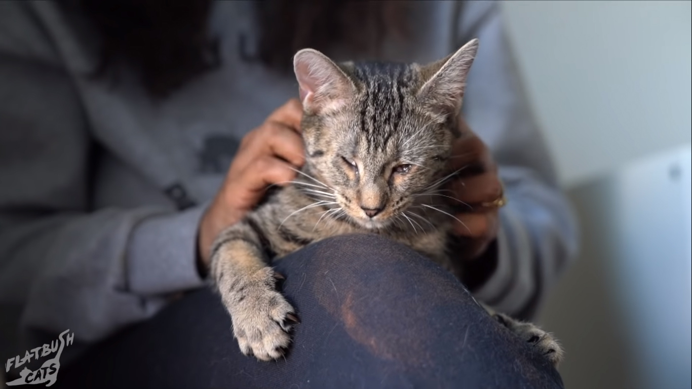 Aria was saved by the Flatbush Cats in Brooklyn, New York when she was only a tiny kitten. They had no idea how things would turn out for this sick cat, they only knew they had to try their best no matter what happened. After basic first aid, they syringe fed and bathed the cat, and then prepared necessary supplies to foster her for a long time.