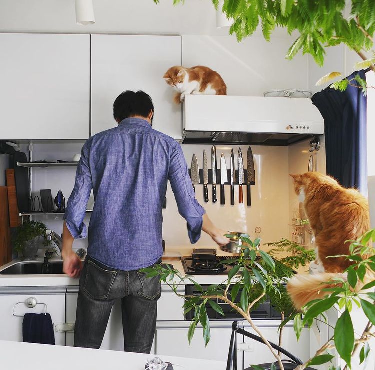 And of course, his cats have been eagerly watching him cooking the whole time (only Haku and Nagi though, Poki always steals ingredients so basically he’s banned from the kitchen).