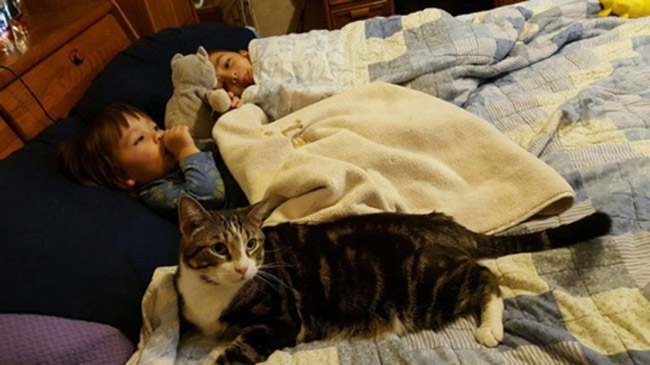 Janine got up, and the cat led her to her daughter Isabella’s room. “Herbie kept pawing at the door and when I opened it, he ran inside and jumped into her crib. Isabella had turned over while sleeping and had pulled a toy blanket over her face,” she recalled.