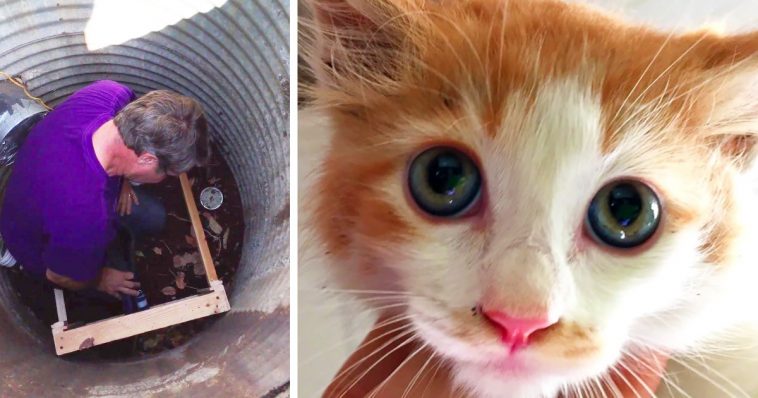 They called in Megan Welch, a young energetic and very limber animal rescuer who came to the scene and got the kitten out, the old fashion way. By, just going into the pipe and getting her out.