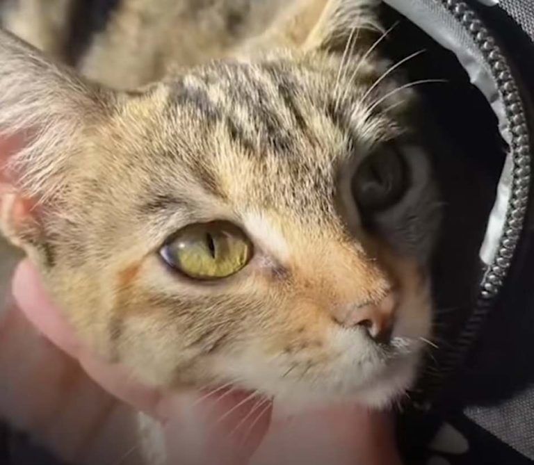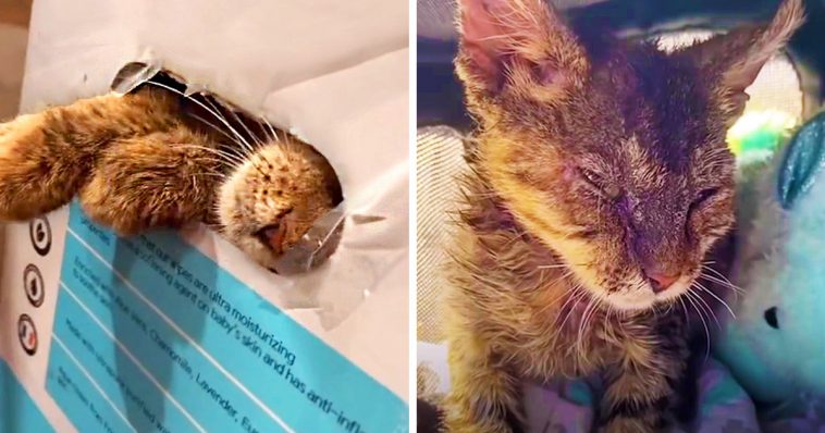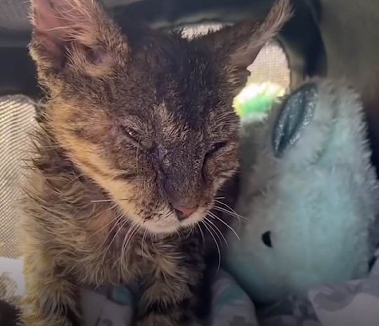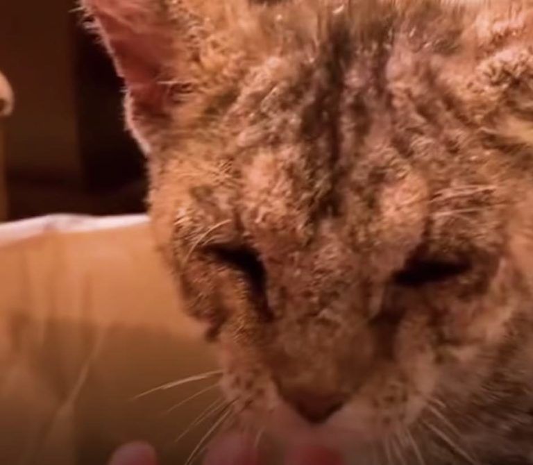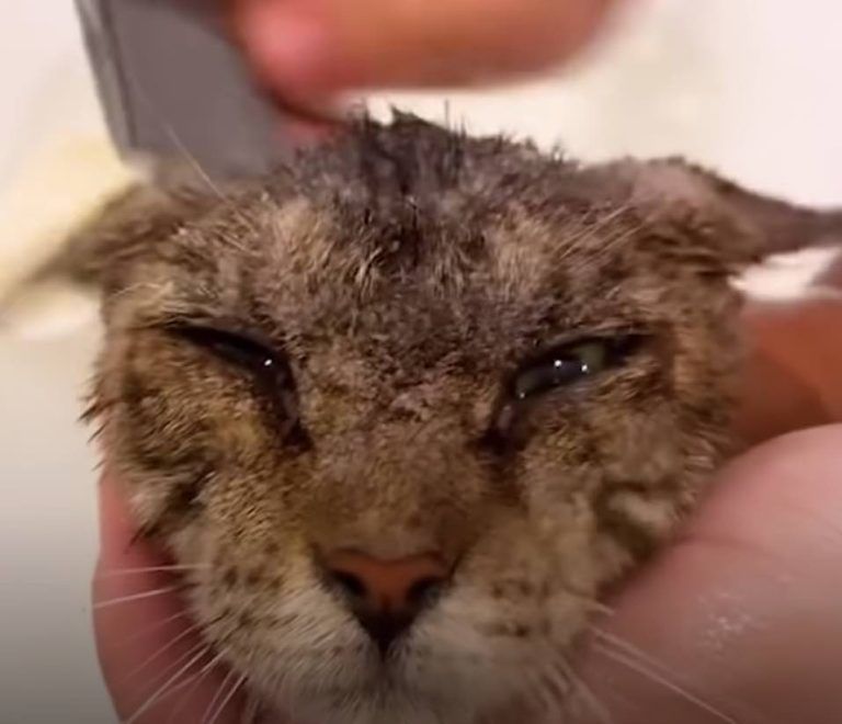 When her little head finally popped out, they couldn’t believe the condition she was in. Her scalp was very dry and her face was all scrunched up – this poor kitty was in need of some love and attention.