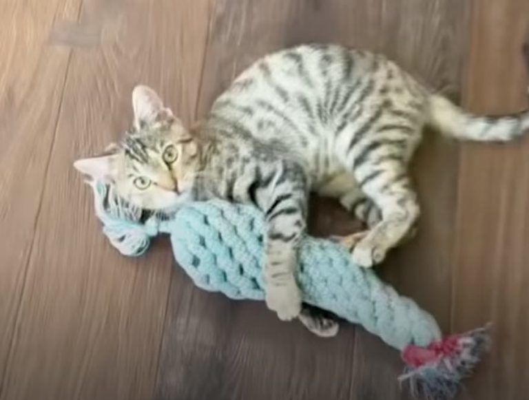 Watch the video to see this amazing kitty’s transformation and see how easily she fits into this loving family: