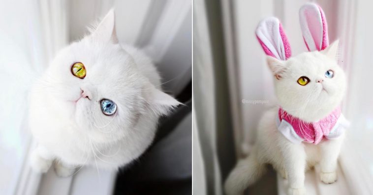 Meet Pam Pam, the kitty with the most beautiful and mesmerizing eyes you’ll ever. But don’t stare too long or you might get hypnotized! The reason behind Pam Pam’s eyes looking like this is because of a condition called heterochromia iridis. It’s characterized by abnormalities in the iris, and those affected by the condition have one eye with a different color than the other. Another type of the condition, called segmental heterochromia, causes different colors in the same eye. Heterochromia can be caused by inbreeding, genetic inheritance, or mutation, and in some breeds of cats, like the Turkish Angora, heterochromia is a desirable trait that breeders try to maintain. Inherited heterochromia iridis is harmless, and it can be found in both animals and humans.