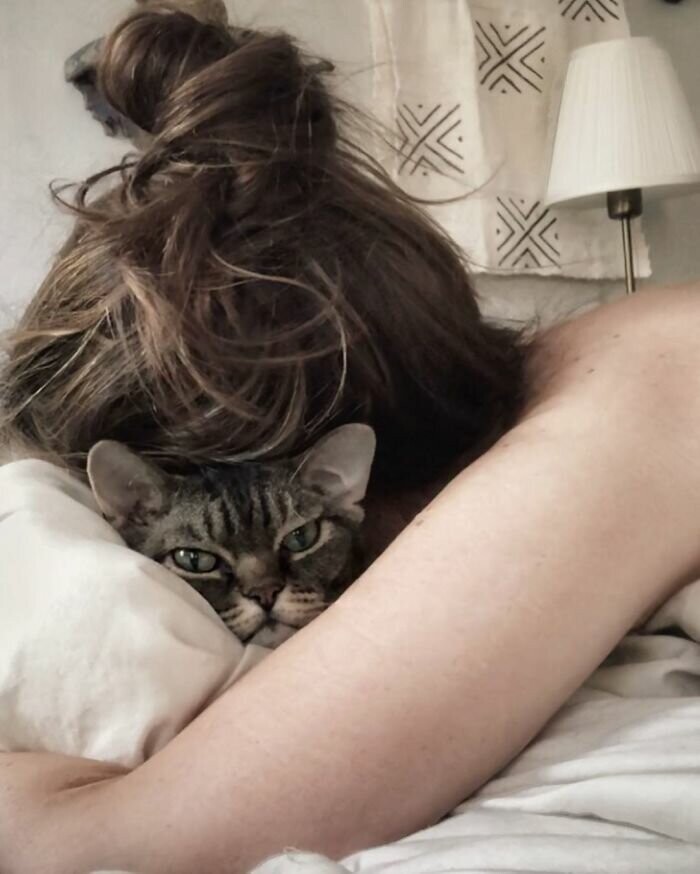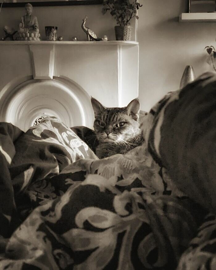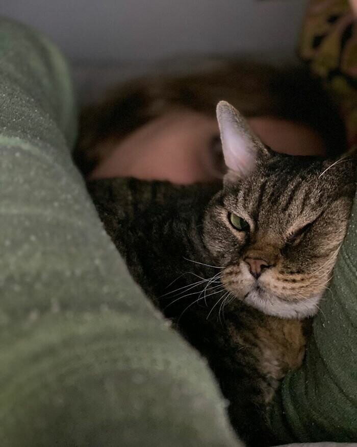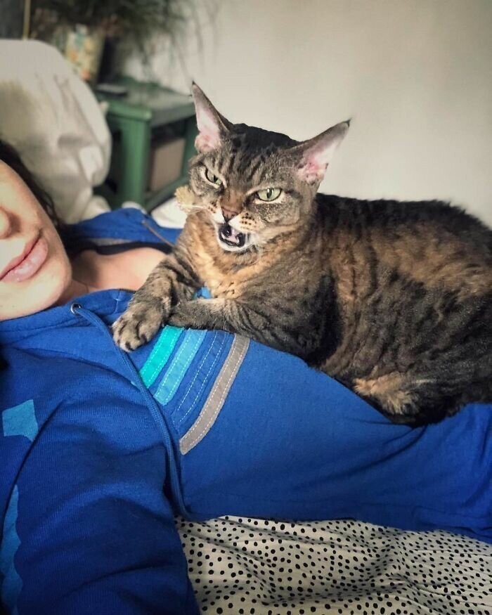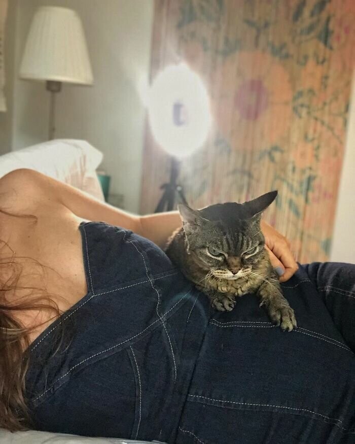 “Occasionally, she’ll obsess over a box or the laundry hamper and camp out there. Barbara’s character fluctuates between being profoundly disappointed in everything I do, to being an adoring ball of mush that I can manipulate into any position without resistance,” the owner told Bored Panda. “She is up for affection and smothering any time of day. If anyone else enters the house though, she basically threaten to murder them.”