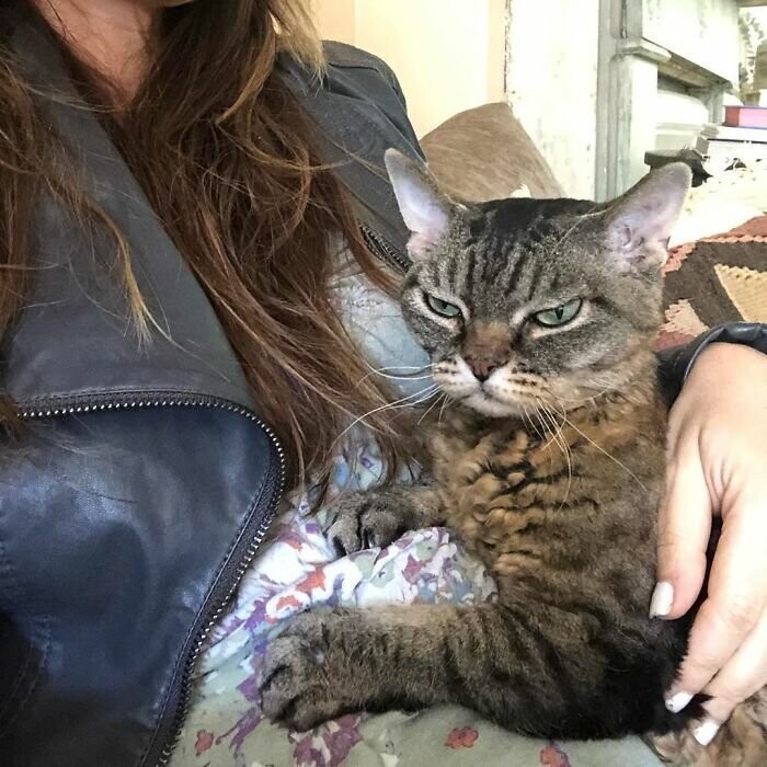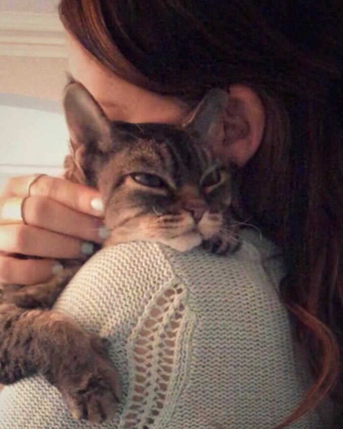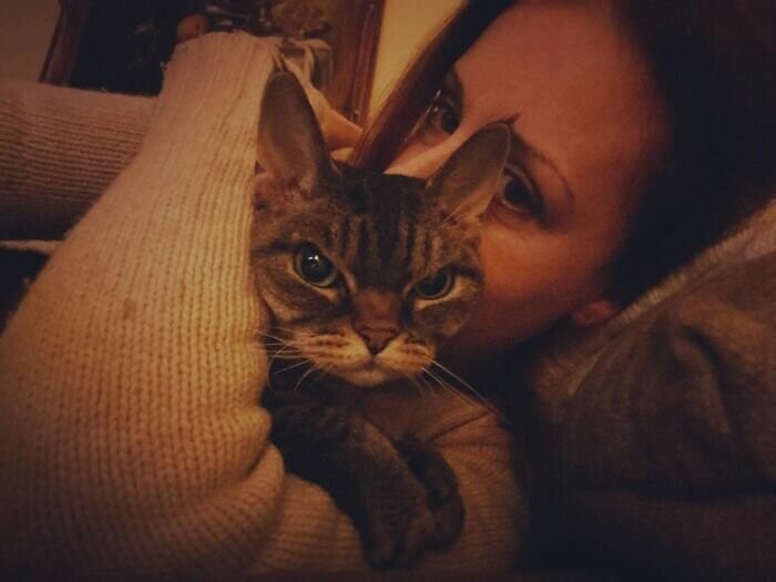 However, she eventually grew to love her new owner and became a kitty-cat full of wholesome love (as well as a fondness for meowsome snuggles).