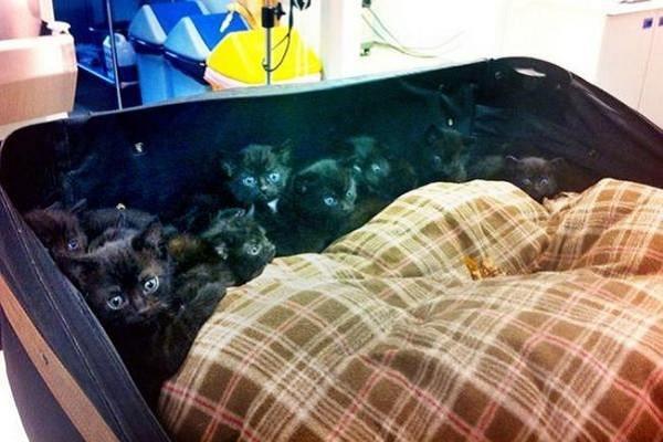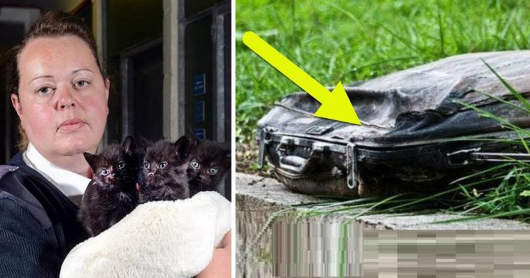 Although the suitcase was in the middle of a park which is a little more unusual, Sara still didn’t think much about it…that is until she heard some muffled cries coming from inside the suitcase! When she opened it up, inside she found 12 black little kittens!