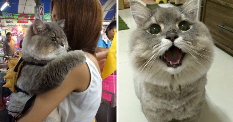 Not only is he super fluffy but he’s becoming quite the celebrity in Thailand with over 513k followers on Instagram! Bone Bone enjoys doing adventurous things like playing at the park and tree climbing – all while wearing his tiny yellow spiky backpack so he looks like Bowser from Mario! But one thing he does not like is being pet. He just likes to keep his fabulous fur to himself…Either way, the adorable and cute fluff ball is a star wherever he goes and people will asks for photos of him constantly! Check out his fluffy pictures below: