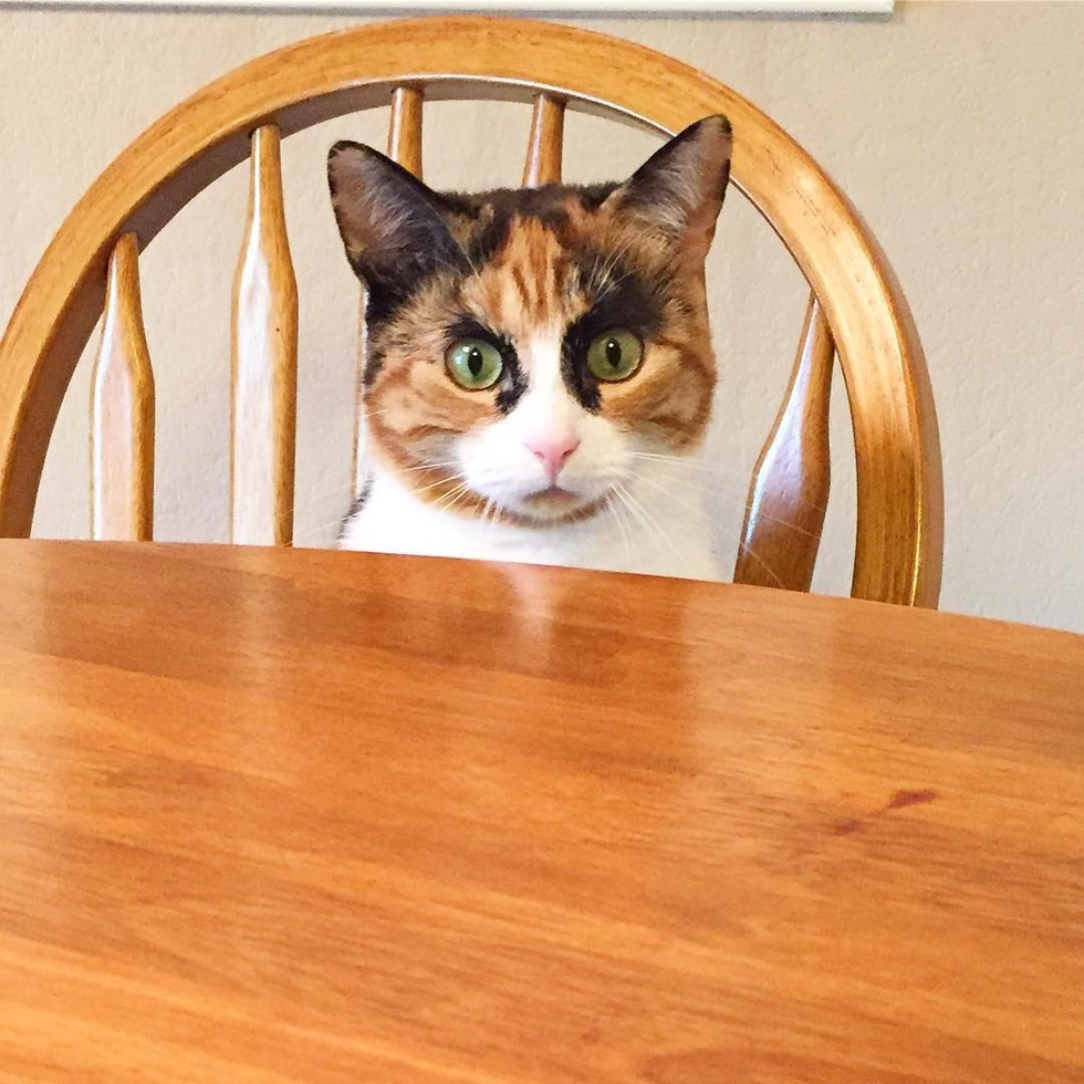 The little supurrvisor monitors her humans by the dining table every time they eat.