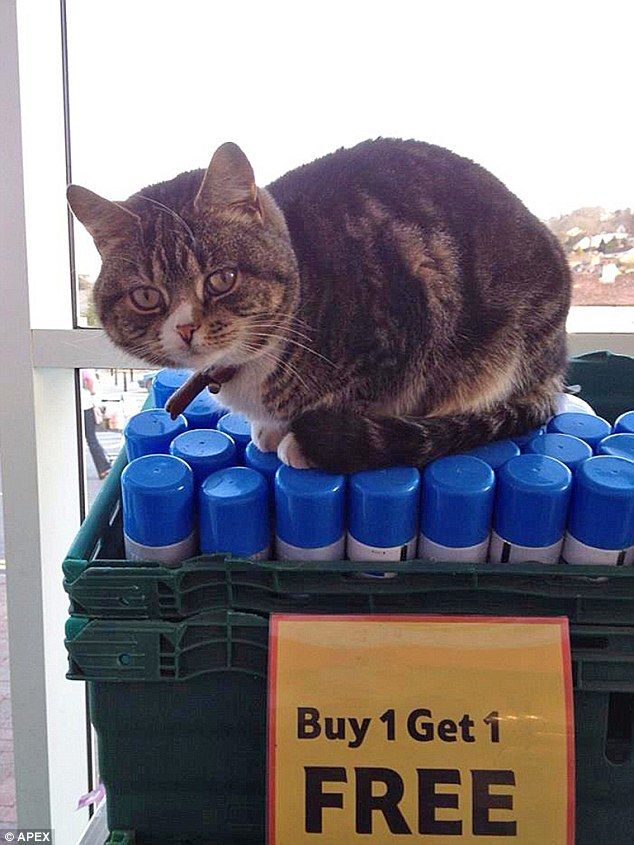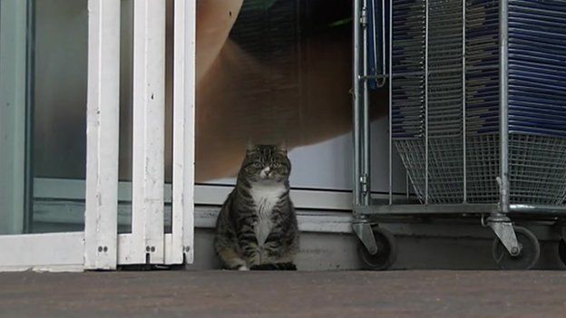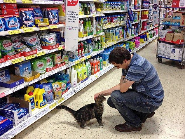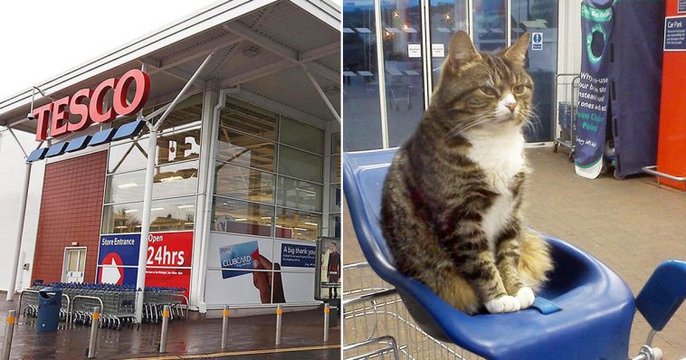 A tabby cat called Mango starting visiting his local Tesco supermarket four years ago and ever since has made it his second home. He is very popular with the store customers and spends most of his day curled up in the foyer asleep, occasionally taking a stroll around the aisles.