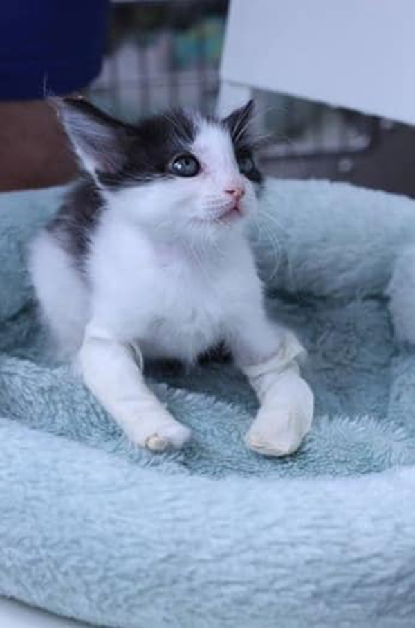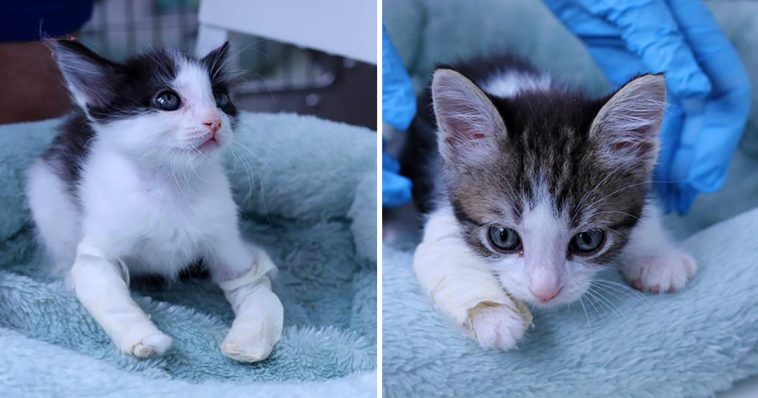 The official diagnosis for their condition is carpal laxity syndrome. It’s a rare bone condition usually seen in puppies. While there’s no clear cause for the disorder, there is a ‘cure’. The kittens required casts for their legs to grow properly and luckily for them they got them.