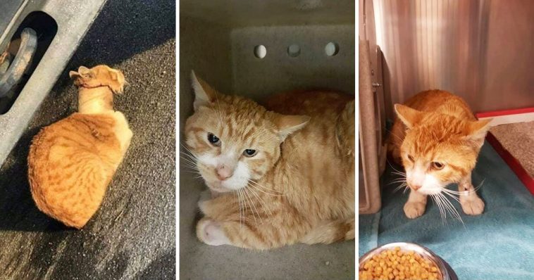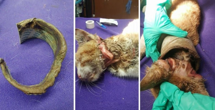 Every day we’re shocked to see pics of inhumane acts people do on animals. Some simply leave them to die on the streets, others do worse. Take this cat from California, for example. It was thrown on the street with a tape roll on her neck, in need of obvious cat. The poor cat was meowing faintly and clearly had no strength. Luckily, some people spotted it on the street, immediately getting in touch with Animal Rescue.