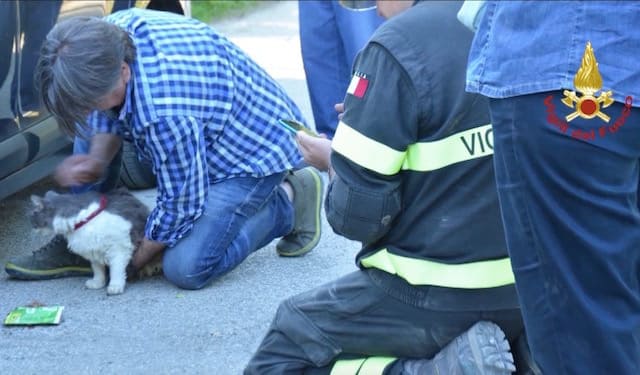 A vet named Cristiana Graziani checked and treated Rocco on the spot. The kitty was tired but in good spirits. And after being cared, Rocco felt so much better.