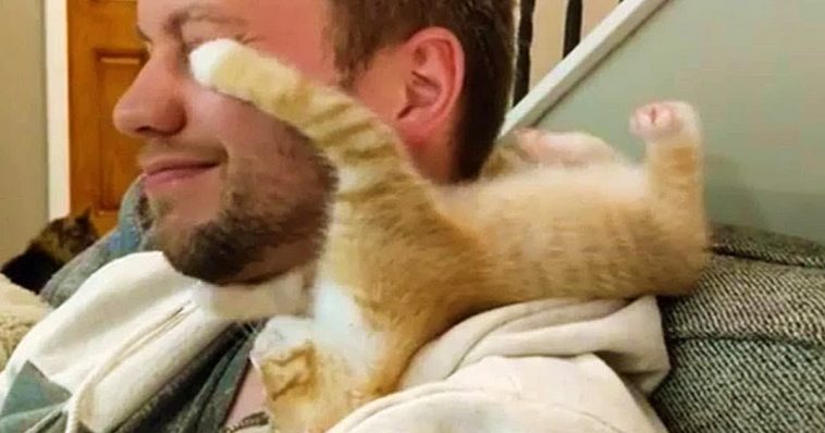 All rescued cats are grateful for the chance they got, even if they don’t all show it. Some cats will reward their moms and dads with an occasional cuddle, but others simply can’t stop thanking their parents. A ginger kitten was recently saved from the streets by a kind man, and after he took him home, it seems that it can’t stop thanking him.