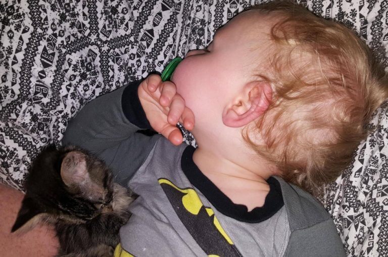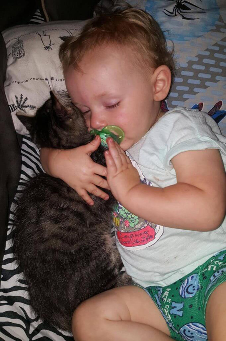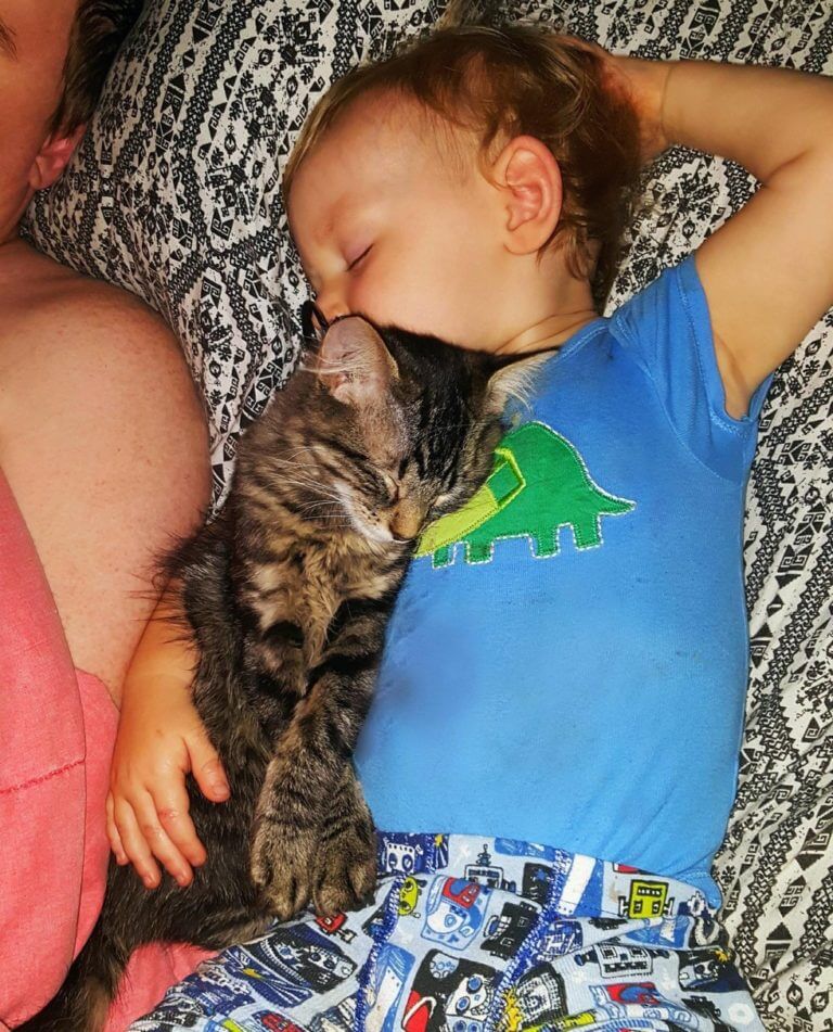 And in order to reciprocate his owners’ kind actions, he gives their baby with lots of kitty cuddles and sleeps with him every night. And now, he can’t stop snuggling and hugging his beloved brother.