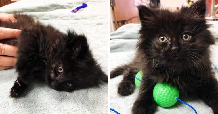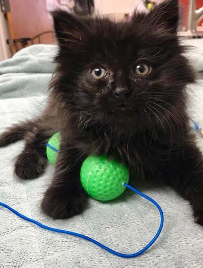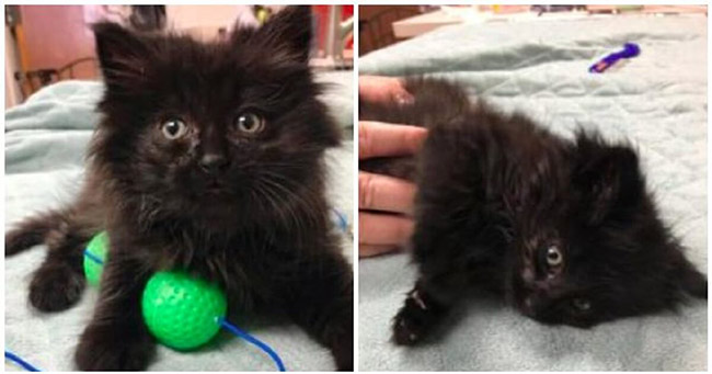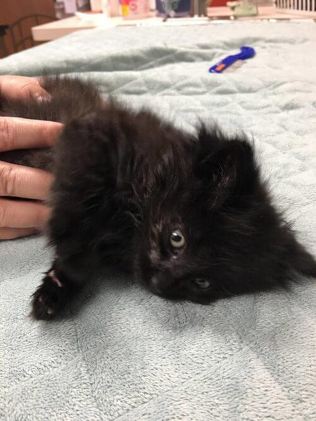 Hutchinson couldn’t find the animal that day. But a few days later, her friend discovered a black kitten scampering across the street. Thankfully, a kind neighbor tried to take the kitten home, cleaned him and gave him food. The cat was happy when he found himself in a warm bath, with offerings of food.