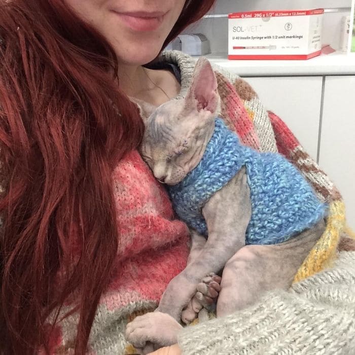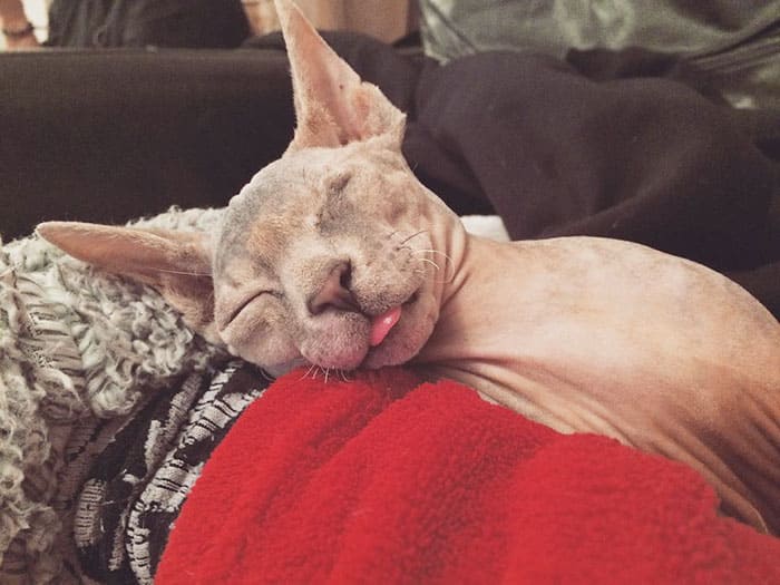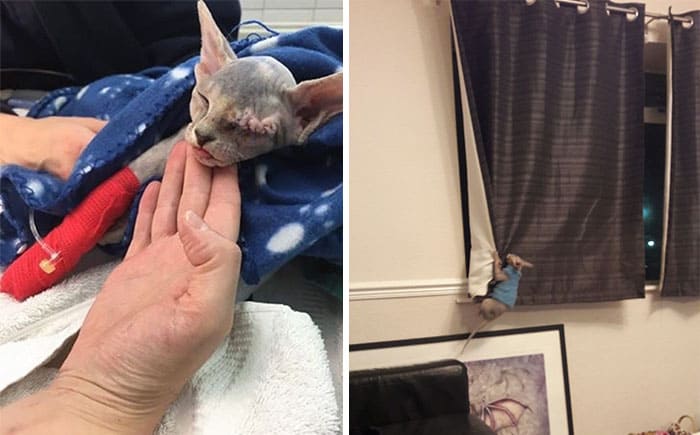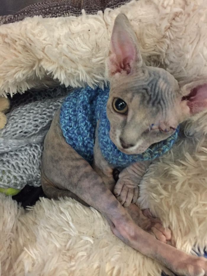 When 24-year-old Phoebe Gill saw a picture of Stitch, the one-eyed hairless cat, she fell in love with the poor cat and knew she had to adopt this sweet kitty.