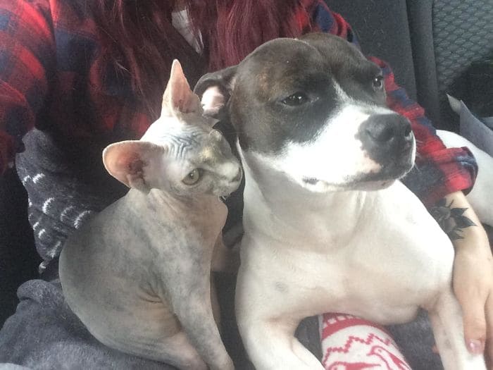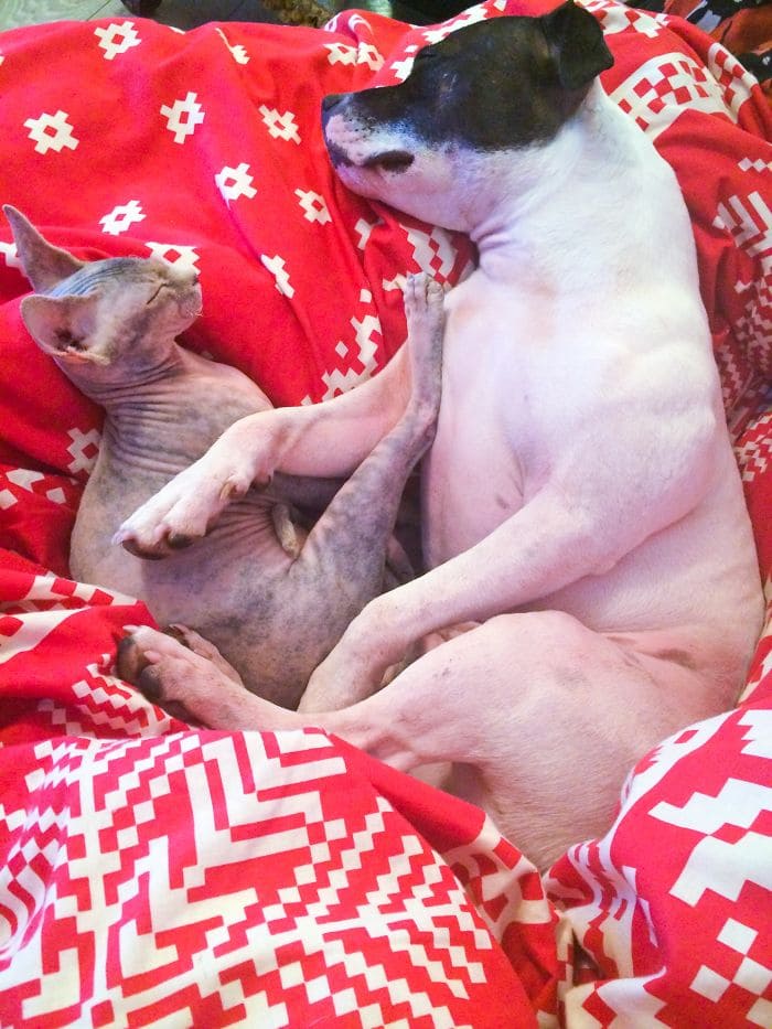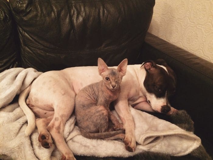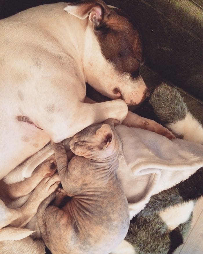 So, Phoebe was worried about how the kitty would get along with her bull terrier, Alaska, and how the big dog would handle the new addition.