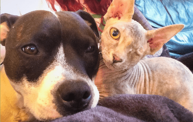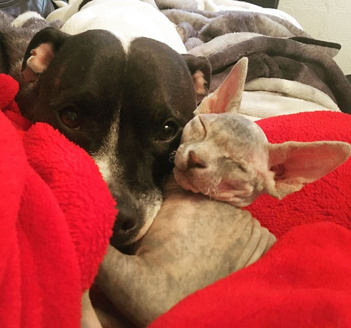 Thankfully, there was nothing to worry about because the dog and cat got along beautifully from their very first day together, and now they become inseparable.