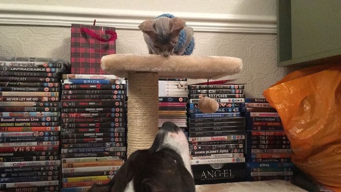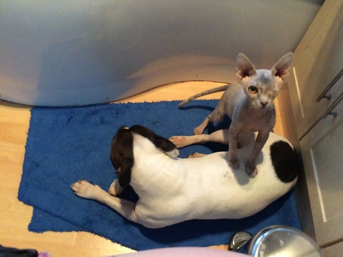 After moving into Phoebe’s home, Stitch needed to not only get used to her new life without an eye, but she needed to adjust to her new home and family. However, the only problem then was Phoebe has a bull dog at home. Scary.