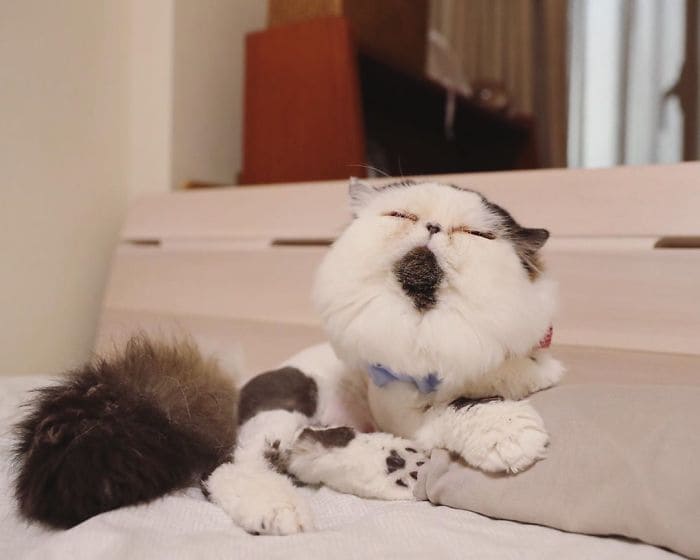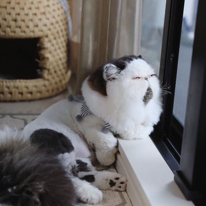 The adorable Zuu lives with another cat named Bocco (a 3-year-old exotic shorthair cat), and both cats are male. The two felines look so chunky and disappointed with life that it’s nearly impossible not to smile. However, they are sure to give you a laugh and make you want to cuddle them.