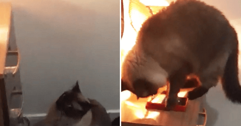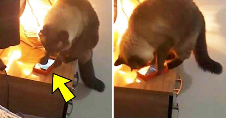 The owners were confused, so they decided to film to find the reason. When the phone starts ringing and vibrating, the cat jumps up to the bedside table, then paws at the phone’s screen until the alarm no longer makes a sound.