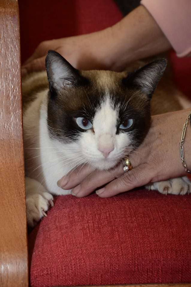 The church’s leader, Osvaldo Boracini, who has cared for him since the day he arrived. Although the cat might not be the little deity he imagines himself to be, he has brought a wonderful thing to the church.