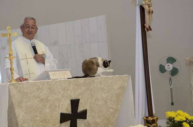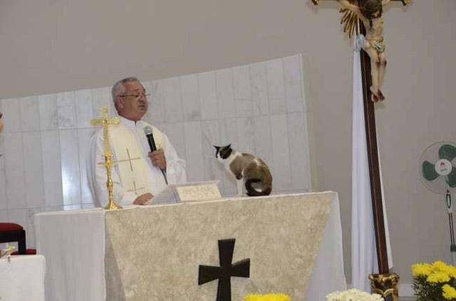 Meet Junior, an adorable stray cat who moved into São Sebastião Parish, in the town of Atibaia, Brazil a few months ago and decided to spend all his life staying here.