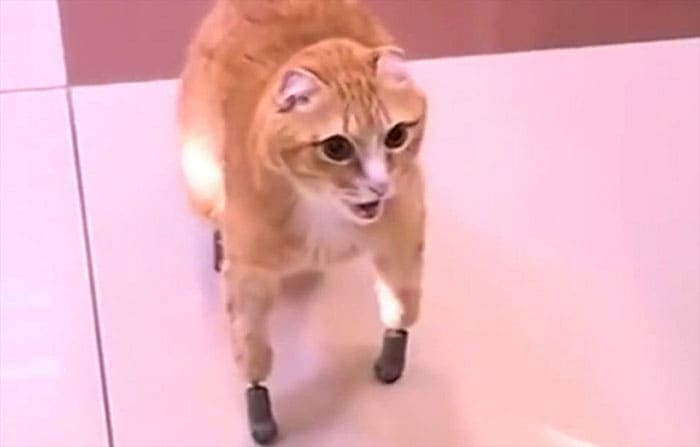 Ryzhik (Ginger or Redhead) was found Tomsk, the city of Siberia where temperatures dropped to minus 40°c. All of his paws were so badly frostbitten, with gangrene setting in quickly and the vet had no other option but amputation. Despite losing all limbs, Ryzhik’s new owner didn’t give up him and decided to take him to a clinic in Novosibirsk, where can set him up with four prosthetic paws.