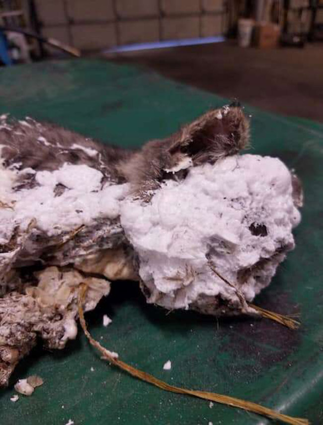 On May 3, a kitten was found covered in spray foam and trapped in a garbage bin in Hillsboro.