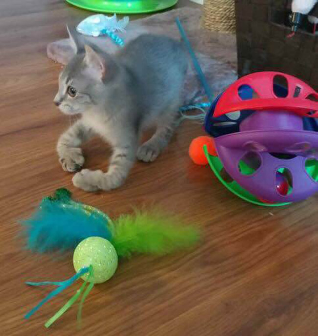 Scooter refused to let his unique paws stop him from doing everything he wanted to do. He loves playing with his foster siblings, and he was also a big fan of playing with toys. He rules the house and even tries to steal his brother’s food!