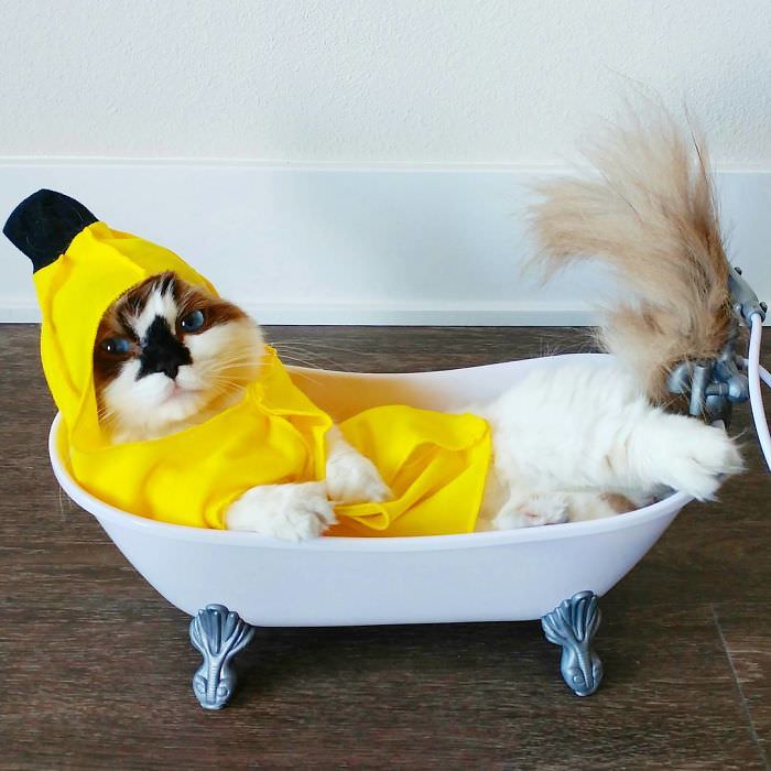 Albert is a kitty who loves to get dressed up and has a wardrobe full of his favorite outfits.