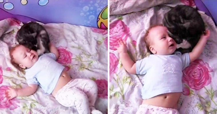 See for yourself in the clip below. Just when the baby starts to cry, the kitty immediately comes to check on and stays there to watch over him/her. Isn’t that just wonderful?