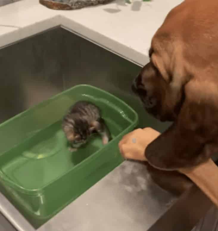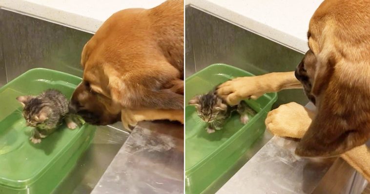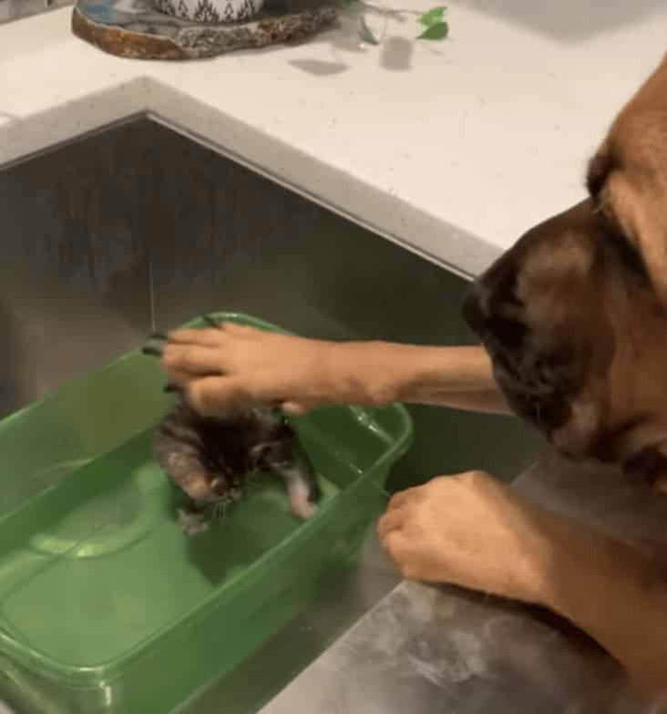 Owned by Stephanie Vice, a veterinary technician, Ruby Jane often fosters kittens in Lakeland. She’s been doing a great job too, helping the little critters overcome various troubles. In the latest photoshoot, she’s helped a 5-week old rescued kitten called Bondie during bathtime, once again proving that not all big dogs are tough and scary.