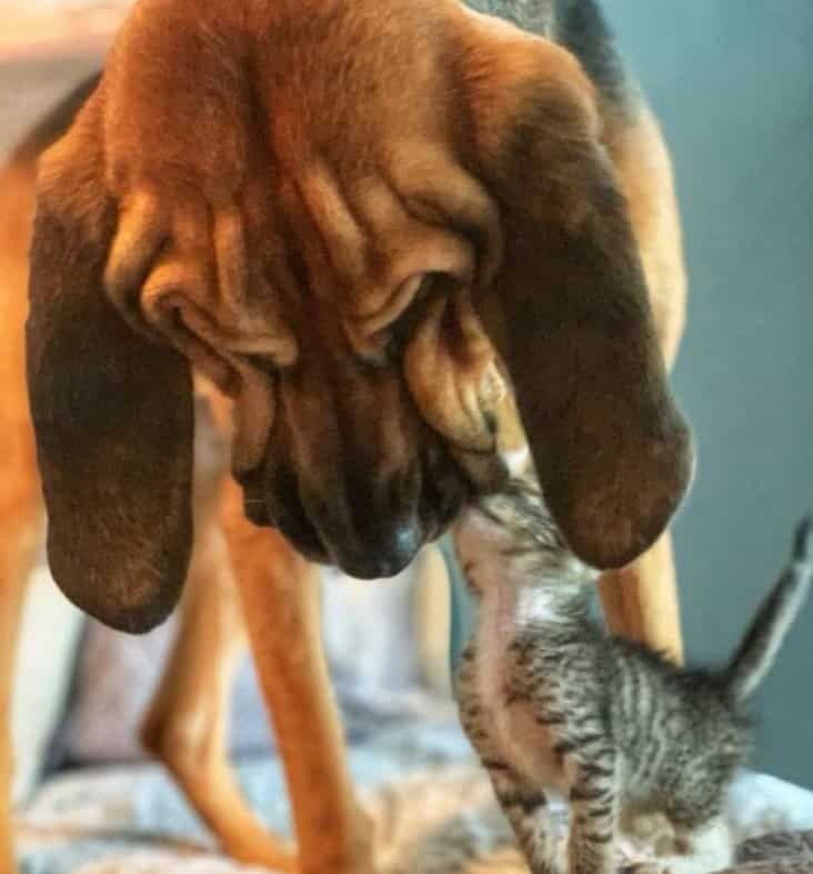 More often than not, big dogs have a reputation of being fierce and wild. This is rarely the case. They are sweet and gentle giants, and this story is proof of it. Ruby Jane, a 5-year old bloodhound, is perfect proof of it. She’s an affectionate dog that loves everyone around her, including smaller rescued kittens.