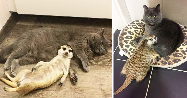We’ve seen more than a few unlikely friendships online. Cats can befriend mice, dogs can befriend cats, and sometimes, we’ve seen domesticated and wild animals get along too. We have that kind of a story today, where a cat and meerkat have become best buds for life.