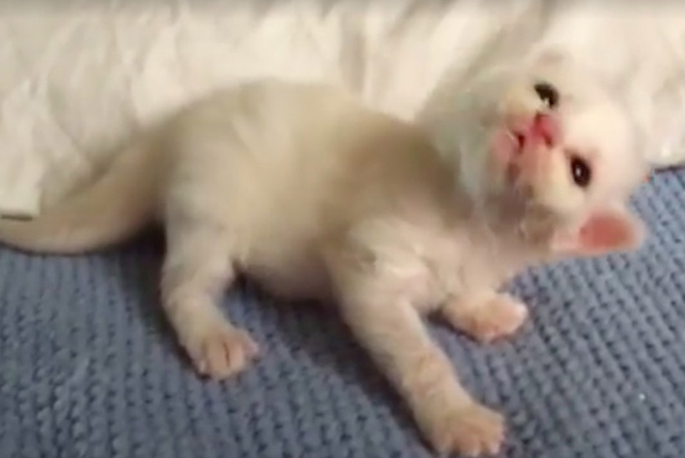 Megan quickly noticed that the little white kitten could barely walk on her own. That was why her siblings were doing everything they could to keep her warm and comfortable.
