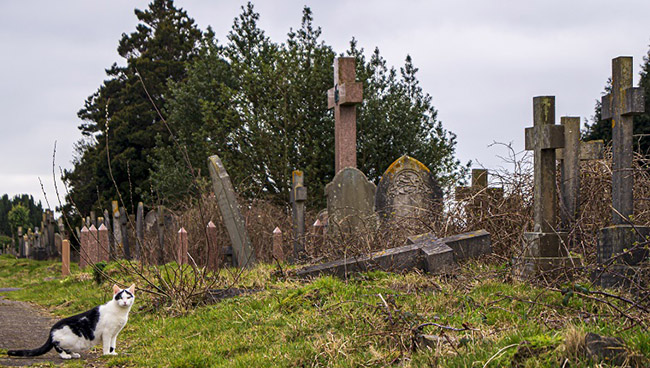 Whilst wandering around the cemetery, this friendly cat approached wanting some attention. He then went off, apparently hunting. I liked this image of something very alive in the stillness of the cemetery so took a photo.