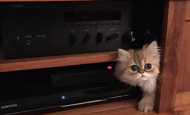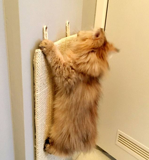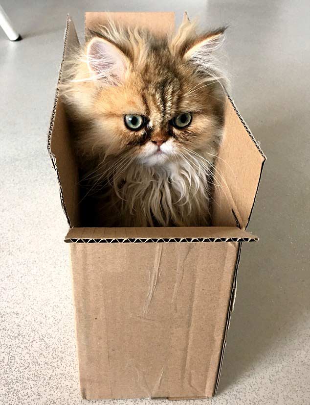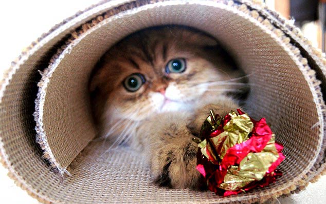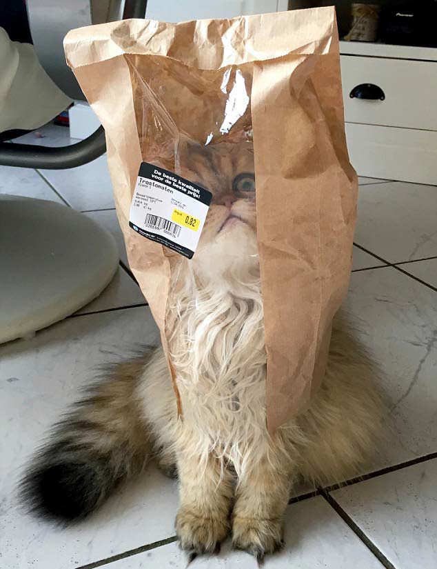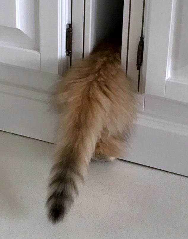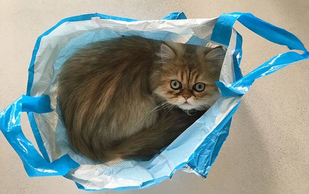 Lucky has the ability to squeeze into tiny spaces and is often caught on camera in a plastic bag, a roll of carpet and a cardboard box.