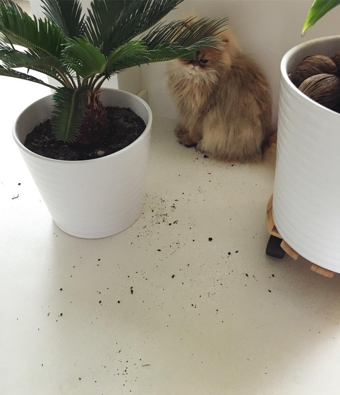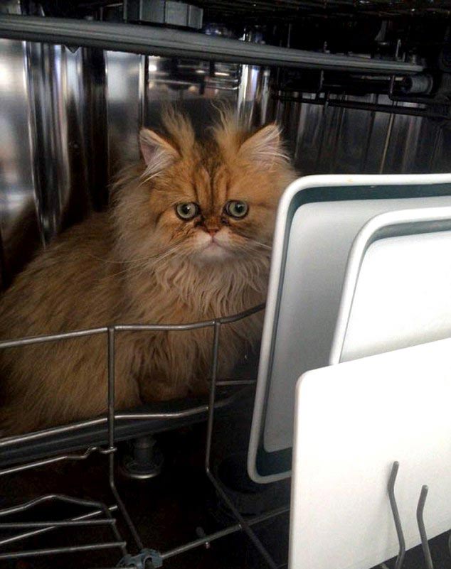 Trying to hide in the cupboard, but not doing a very good job…