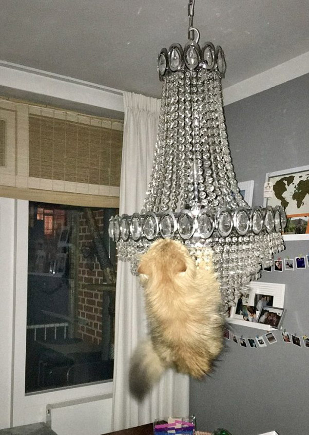 Just hanging out on the chandelier lamp shade…