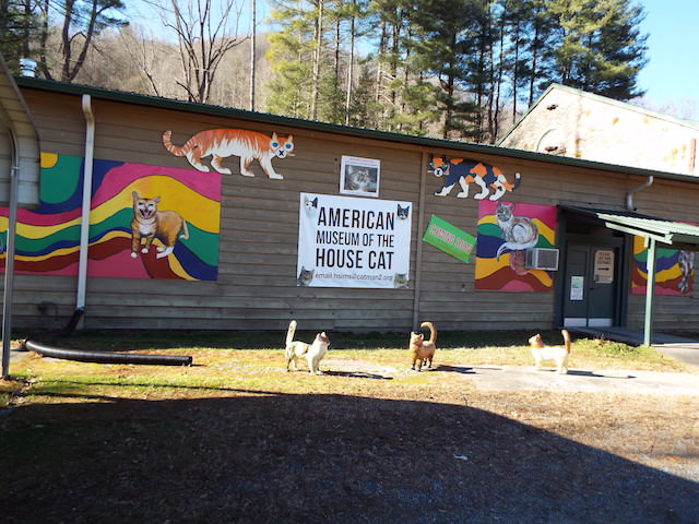 If you live in the area or you’re just traveling through, make sure to stop by the American Museum of the House Cat in Sylva, 4704 US Highway 441, just south of Dillsboro, North Carolina. Locals will notice that it’s located in the former Old School Antique Mall.